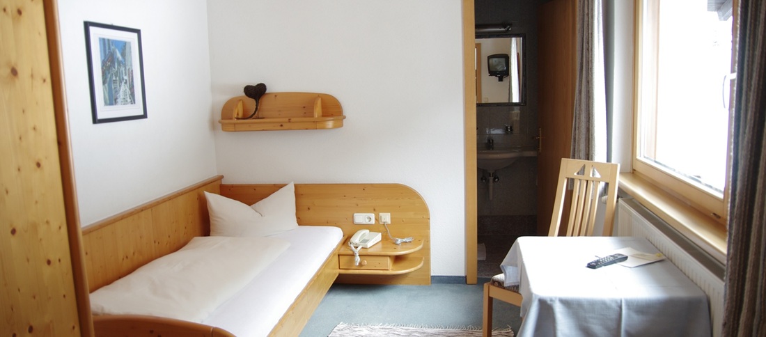 Genießen Sie schon von Ihrem Zimmer aus den faszinierenden Ausblick auf die majestätische Bergwelt des Silvretta-Massivs. Unser liebevoll gestaltetes Einzelzimmer bietet Ihnen eine perfekte Kombination aus Komfort und Funktionalität für einen erholsamen Aufenthalt.